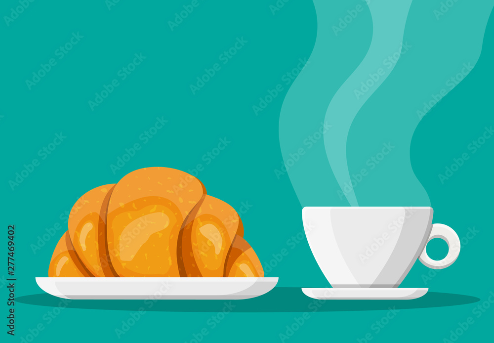 Coffee Cup And French Croissant Coffee Hot Drink Concept For Cafe Restaurant Menu Desserts Bakery Breakfast View Vector Illustration In Flat Style Stock Vector Adobe Stock